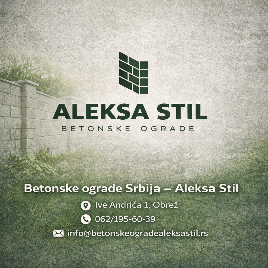 Betonske ograde Srbija – Aleksa Stil je firma specijalizovana za proizvodnju i montažu kvalitetnih betonskih ograda širom Srbije. Naša osnovna delatnost zasniva se na izradi trajnih, sigurnih i estetski prilagođenih rešenja za ograđivanje privatnih i poslovnih objekata. Dugogodišnje iskustvo u radu omogućilo nam je da razvijemo sistem koji garantuje stabilnost konstrukcije, dug vek trajanja i visok nivo završne obrade.