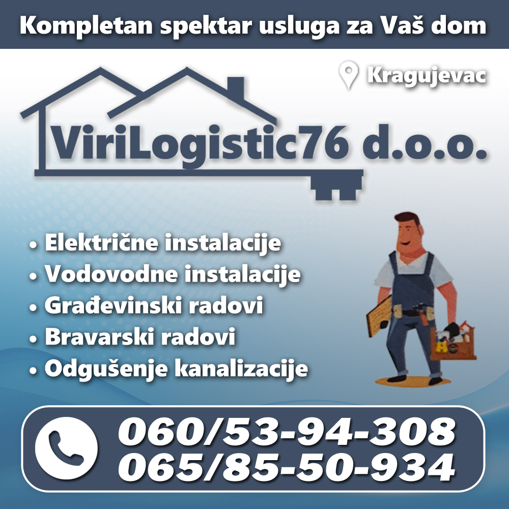 Na jednom mestu iskusni i profesionalni majstori za sve vrste poslova u domaćinstvu: električari, vodoinstalateri, bravari, zidari i gradjevinski preduzimači. Brza i kvalitetna usluga. Povoljne cene. Dostupni klijentima svaki dan na teritoriji opštine Kragujevac i u regionu. Budite slobodni i pozovite nas za sve vrste dodatnih informacija.