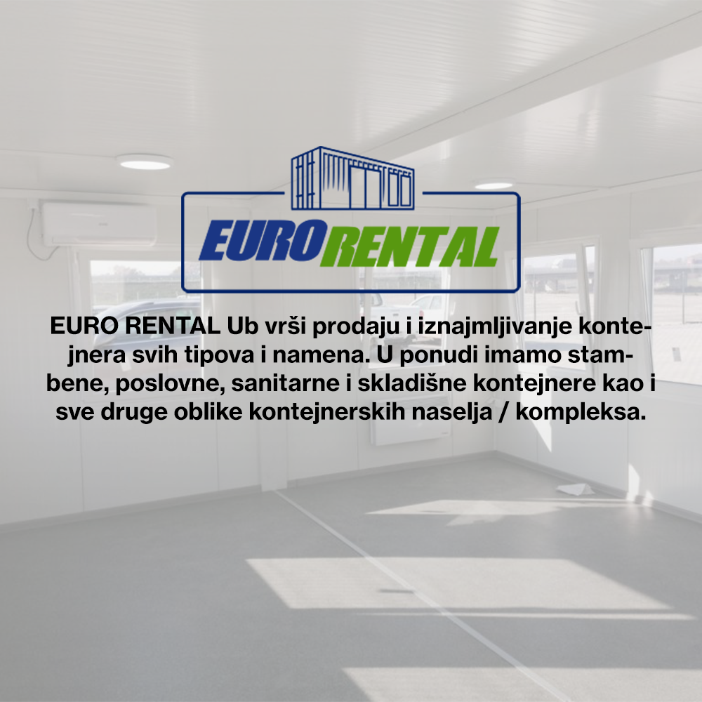 EURO RENTAL Ub vrši prodaju i iznajmljivanje kontejnera svih tipova i namena. U ponudi imamo stambene, poslovne, sanitarne i skladišne kontejnere kao i sve druge oblike kontejnerskih naselja / kompleksa.