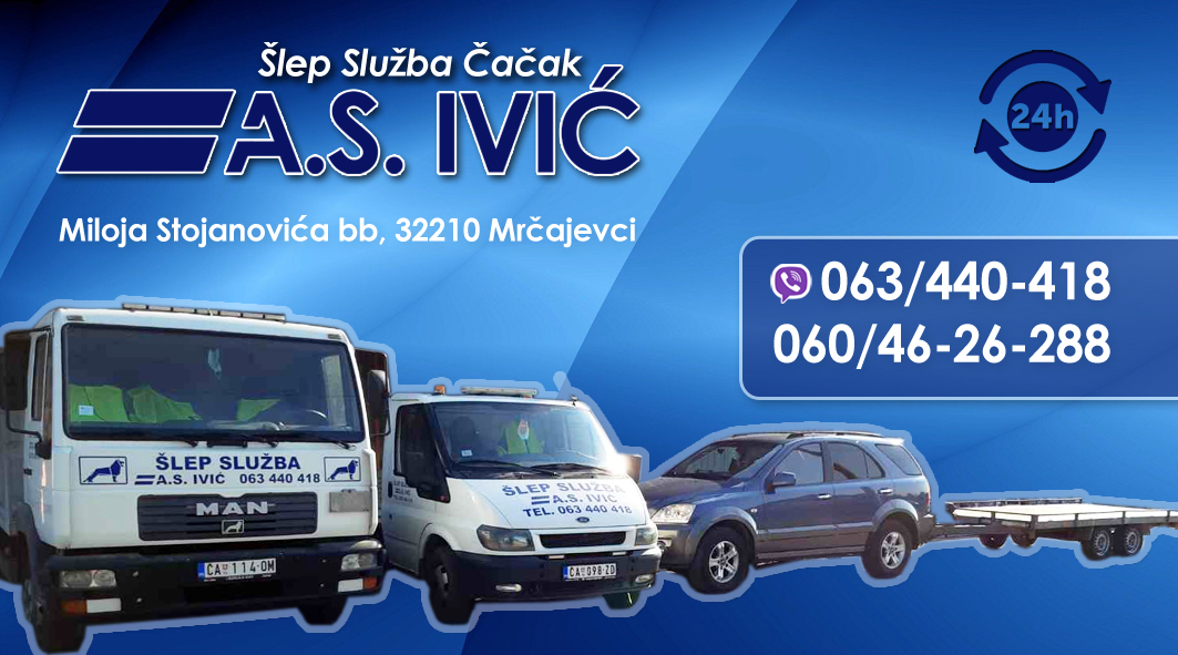 U bilo koje doba dana ili noći, ako Vam je potrebna pouzdana šlep služba – pozovite nas! Šlep služba AS IVIĆ, dugi niz godina posluje na teritoriji naše zemlje i inostranstva i broji mnoštvo zadovoljnih klijenata. Kada se desi nenadana i neprijatna situacija kvara vozila na putu, bilo da se radi o kombiju, autu, dostavnom vozilu, čamcu, motoru, traktoru, poljoprivrednoj mašini i slično, naša firma je tu da Vam pomogne. Za veoma kratak period od Vašeg poziva, doći ćemo na adresu na kojoj se nalazite i odšlepati vozilo do željene adrese. Osim na našim putevima, bavimo se i šlepanjem automobila iz inostranstva, pouzdano, efikasno i profesionalno. ŠLEP SLUŽBA koja Vam stoji na raspolaganju SVAKODNEVNO, 7 DANA U NEDELJI, 24H!
