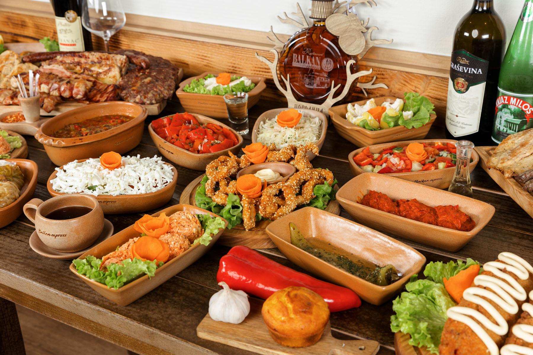 Na meniju se nalaze raznovrsni specijaliteti balkanske kuhinje – od laganih salata, predjela i domaćih čorbica, preko sočnog roštilja i pečenja ispod sača, pa sve do ribljih jela i tradicionalnih slatkiša. Svaki recept pažljivo je pripremljen, sa istim onim začinima i tehnikama koje su deo naše kuhinjske tradicije, ali prilagođen modernom ukusu.
