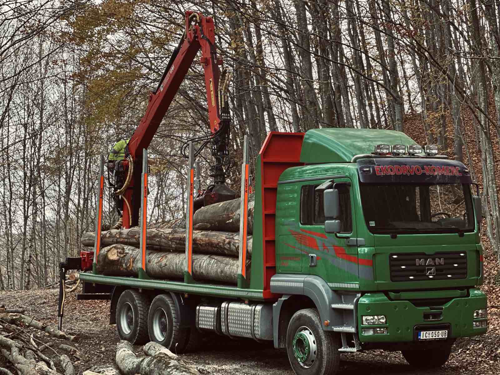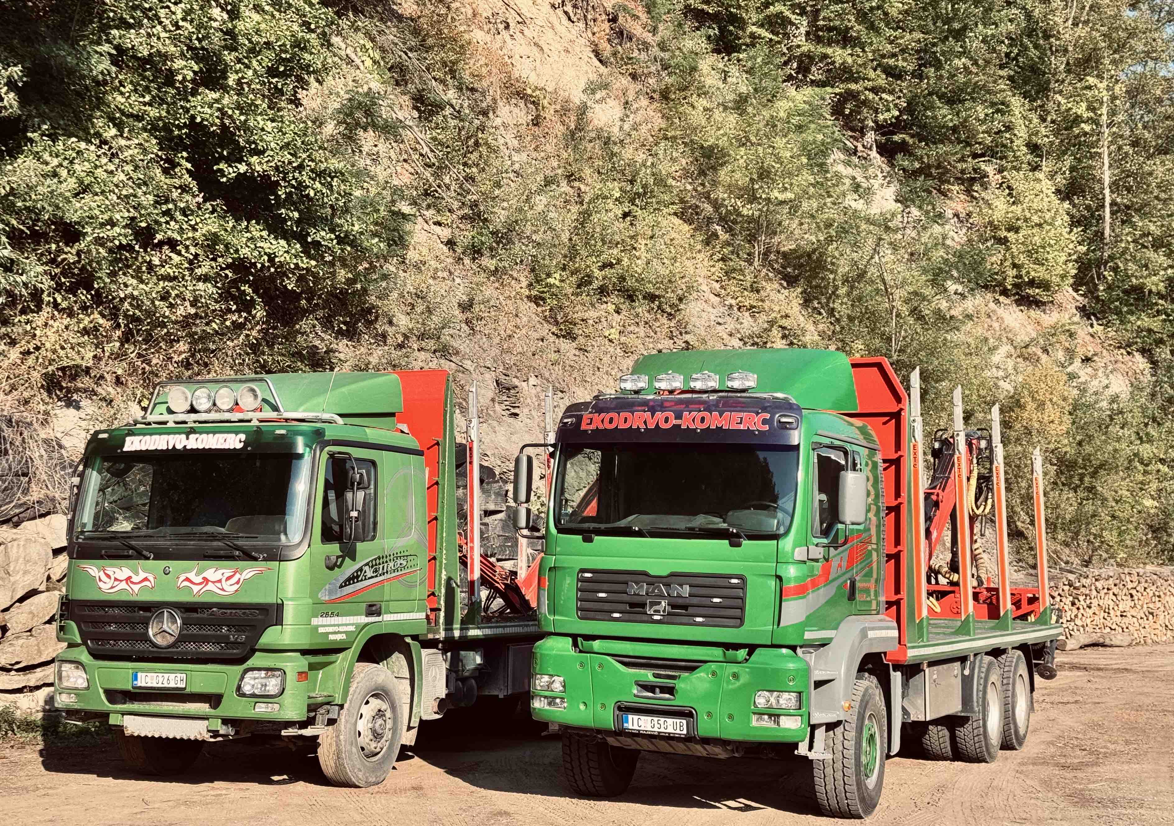 Firma EKODRVO-KOMERC poseduje vlastiti vozni park i nudi usluge prevoza drvne građe kamionima šticarima.